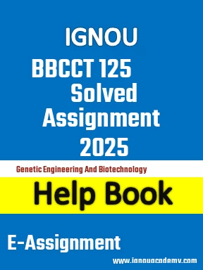 Looking for IGNOU BBCCT 125 Solved Assignment 2025. You are on the Right Website. We provide Help book of Solved Assignment of BSCBCH BBCCT 125 - Genetic Engineering and Biotechnologyof year 2025 of very low price.
