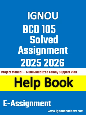 Looking for IGNOU BCD 105 Solved Assignment 2025 2026. You are on the Right Website. We provide Help book of Solved Assignment of CESEIID BCD 105 - Project Manual – 1: Individualized Family Support Planof year 2025 2026 of very low price.
