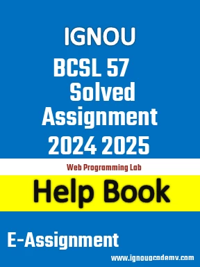 Looking for IGNOU BCSL 57 Solved Assignment 2024 2025. You are on the Right Website. We provide Help book of Solved Assignment of BCA BCSL 57 - Web Programming Labof year 2024 2025 of very low price.