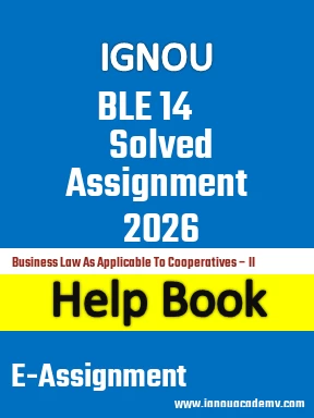 Looking for IGNOU BLE 14 Solved Assignment 2026. You are on the Right Website. We provide Help book of Solved Assignment of CCLBL BLE 14 - Business Law as applicable to Cooperatives – IIof year 2026 of very low price.