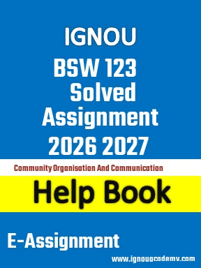 Looking for IGNOU BSW 123 Solved Assignment 2026 2027. You are on the Right Website. We provide Help book of Solved Assignment of BSWG BSW 123 - Community Organisation and Communicationof year 2026 2027 of very low price.