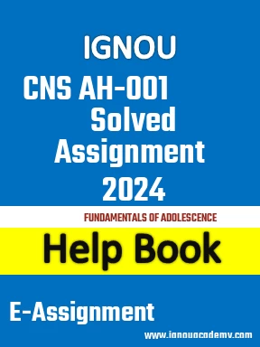 Download a PDF soft copy of IGNOU CNS AH-001 FUNDAMENTALS OF ADOLESCENCE CAHC Latest Solved Assignment for Session January 2024 - December 2024 in English Language.