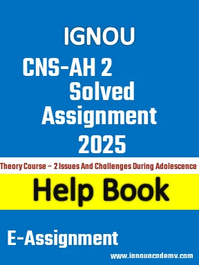 Looking for IGNOU CNS-AH 2 Solved Assignment 2025. You are on the Right Website. We provide Help book of Solved Assignment of CAHC CNS-AH 2 - Theory Course – 2 Issues & Challenges during Adolescenceof year 2025 of very low price.
