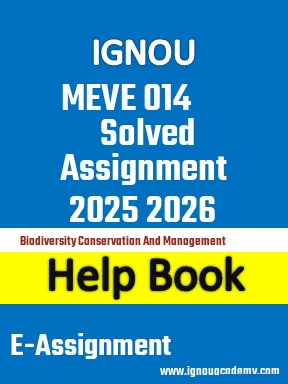 Looking for IGNOU MEVE 014 Solved Assignment 2025 2026. You are on the Right Website. We provide Help book of Solved Assignment of MSCENV MEVE 014 - Biodiversity Conservation and Managementof year 2025 2026 of very low price.