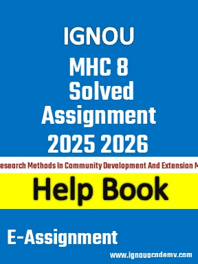 Download a PDF soft copy of IGNOU MHC 8 Research Methods in Community Development & Extension Management MSCHSC Latest Solved Assignment for Session January 2026 - December 2026 in English Language.