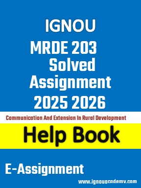 Looking for IGNOU MRDE 203 Solved Assignment 2025 2026. You are on the Right Website. We provide Help book of Solved Assignment of PGDRDOL MRDE 203 - Communication and Extension in Rural Developmentof year 2025 2026 of very low price.